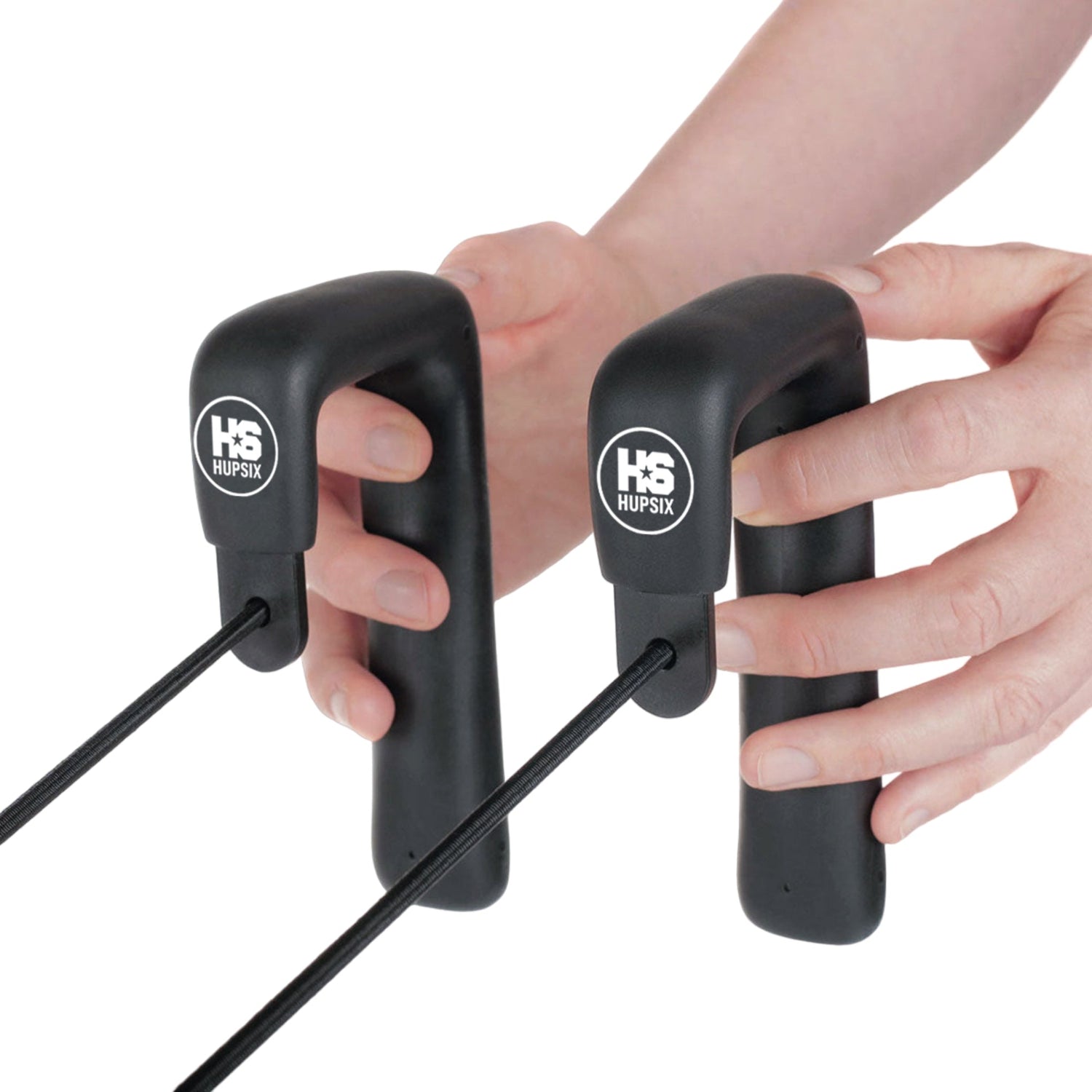 The HupSix handles are designed to be held with your fingertips and an open palm and easily maneuver between positions. The bungee provides constant resistance, engaging your entire body for a full-body workout.