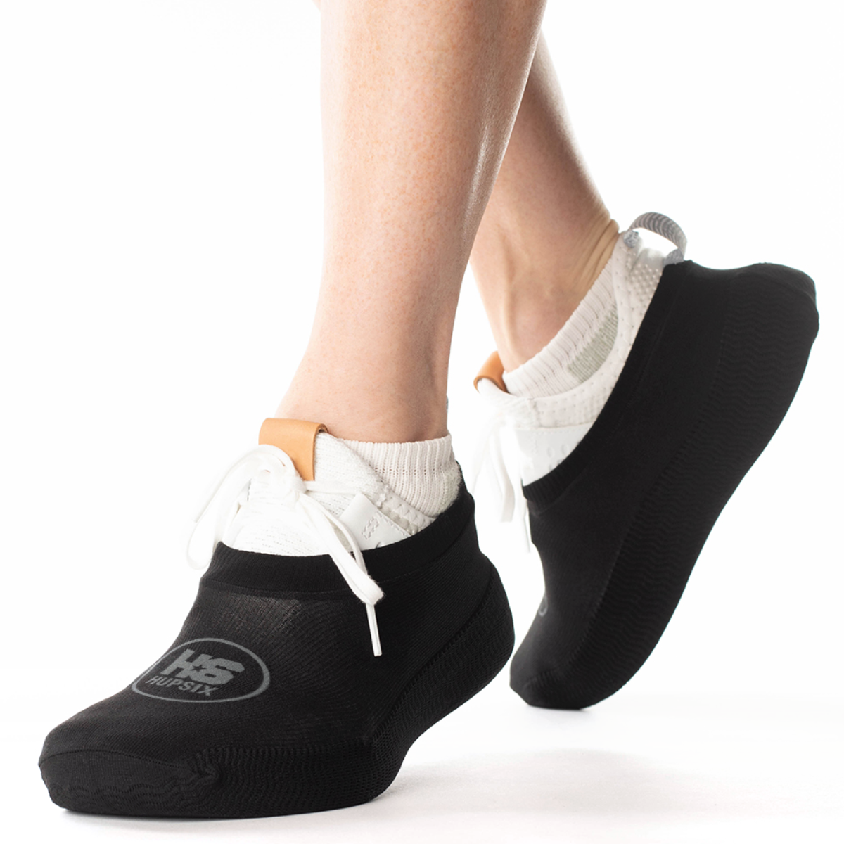 The HupSix Socks go over your sneakers so you can easily twist and turn on smooth and carpeted floors. They protect your knees and ankles from strain injuries and are required for all HupSix classes.